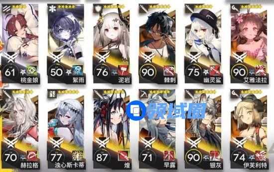 需求干员(如下图所示):桃金娘/极境、絮雨、泥岩、棘刺、幽灵鲨、艾雅法拉、赫拉格、浊心斯卡蒂、煌、早露、银灰、伊芙利特