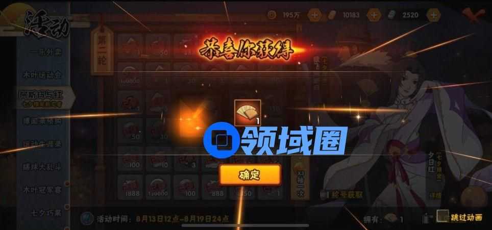 虽然这个活动设定是在一轮结束的时候有概率开出一个或者两个道具,但绝大多数玩家肯定都是吃保底的一个,只有极少数的欧皇会有概率开出两个。这样的设定也是很有诱惑力,我在抽到一轮保底后,犹豫了一下到底要不要继续抽下去,还是只兑换一个夕日红就完事了?但又有一种想法是说,万一我这次欧气爆发,直接抽到两个道具,岂不是直接兑换到两个忍者?最终的结果大家也看到了,全程吃保底,毫无悬念,各位可以根据自己的情况适当地来选择。