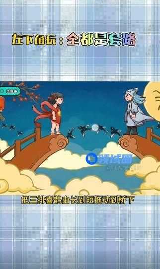 第四关:鹊桥相会这个就是把喜鹊拖下去,然后利用图中3个不同长度的喜鹊搭建,最后成了wifi。