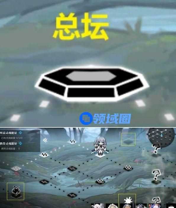 2、拿到宝箱之后,在去跳转右上角的小怪拿能量,打完小怪后就可以去总坛存放能量。(总坛样子如下)