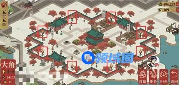 随后玩家可以建造1个钓鱼台、1个盆景园