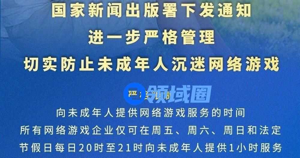 未成年玩家每周只能在周五、周六和周日的玩一个小时,并且规定时间是晚上8点到9点。