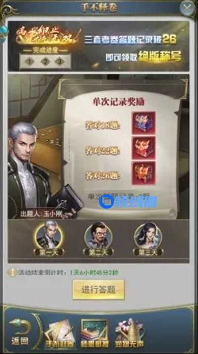 活动期间,每天开放1份考卷,共3份考卷,已开放的考卷持续到活动结束,期间玩家可随时前往答题;