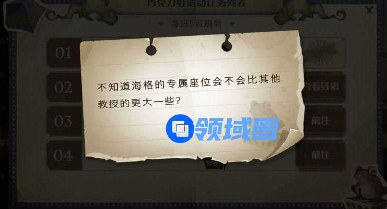 这个就是巧克力蛙NPC给我们的礼物了呢,我们只要找到海格然后交流一下就可以获取这个巧克力蛙了呢,对我们来说福利还是有很多的;