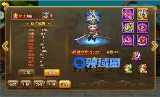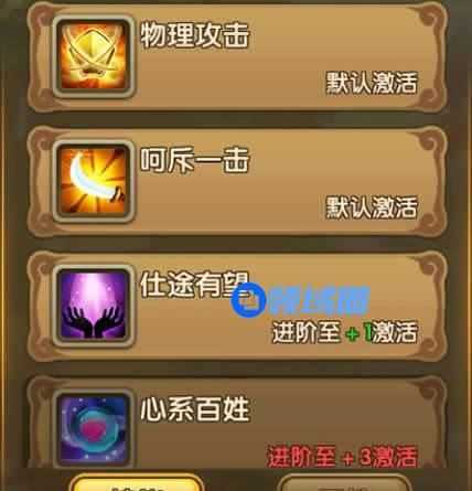 攻击加成和自身技能等级有关,附带技能提高血量上限,随着等级的提高和装备等道具的加成,物抗效果显著增加。