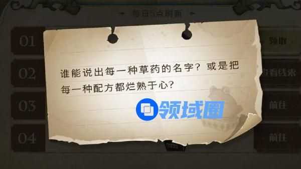 9月19日是哈利波特手游中巧克力蛙活动的第五天,今天给出的提示线索为:谁能说出每一种草药的名字?或是把每一种配方烂熟于心。