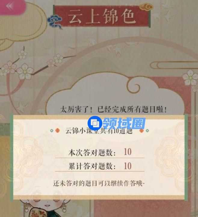 闪耀暖暖云上锦色答题答案是什么?这些问题总共有10道题目,很多老玩家都并不能将这些题目全部都答对,所以当新手遇到之后可能有着更加困难了。下面就为大家带来闪耀暖暖云上锦色所有问题答案大全。
