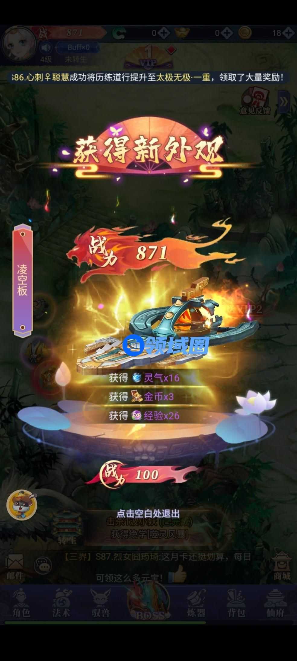 在《天剑奇缘》中,玩家激活各种宝物均能提升不菲的战力数额,除了玲珑宝塔玩法外,游戏中还有很多诸如机甲变身、麒麟神臂、神魔前线、星辰BOSS、神兽岛等特色玩法。