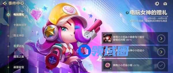 电玩赠礼活动介绍:9月23日—10月21日,解锁小小厄运小姐,可领取电玩召唤币等超值神话回馈好礼相送。