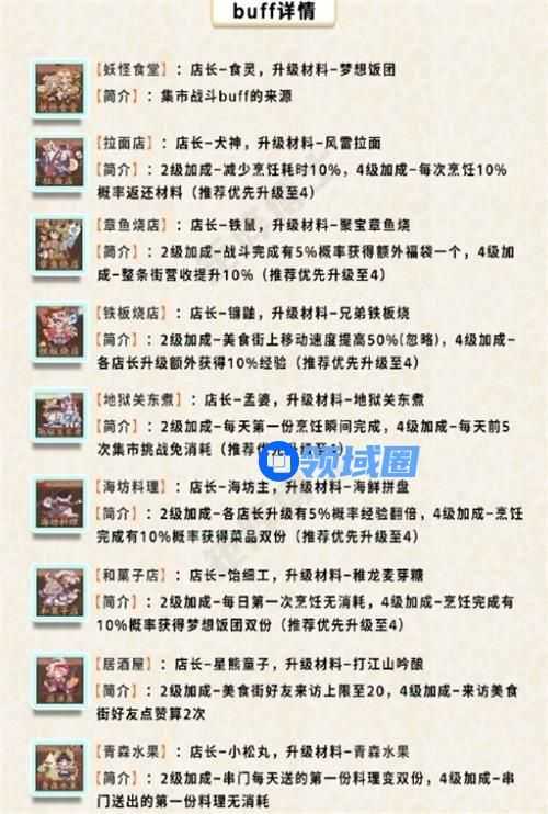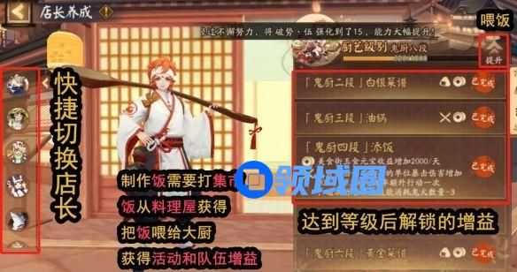 ※每个店长有10级厨艺级别,每一级对应着不同的效果。