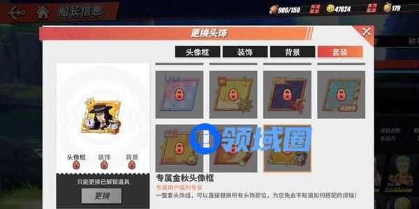 在航海王热血航线手游中,有一些玩家已经获得了专属金秋头像框,而其他一些玩家也注意到了这个头像框,感到非常羡慕,想要知道这个新的头像框套装要怎么取得。