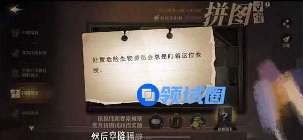 处置危险生物委员会总是盯着这位教授大家都知道这条线索说的是海格,可是当我们去海格小屋的时候,无论外面还是里面都看不到头顶线索的NPC,其实诸君没跑错地方,这条拼图线索就在海格小屋外面的空地上。