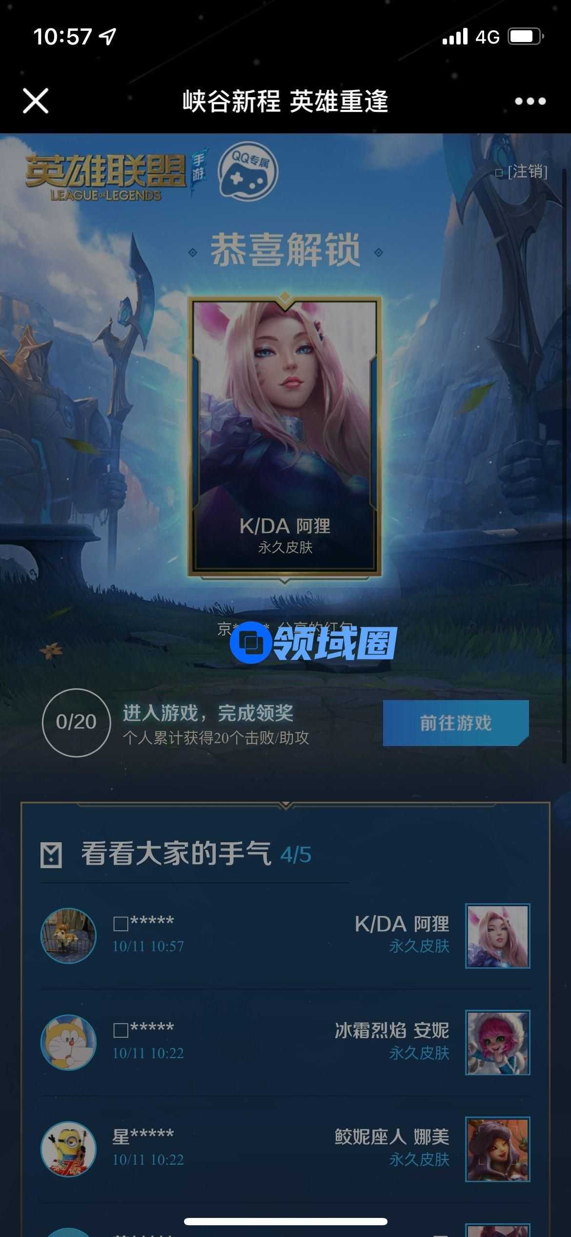 3、同时其他的玩家也可以分享给你,这样一共可以领取6个不同的英雄或者皮肤,也需要玩家的运气了。