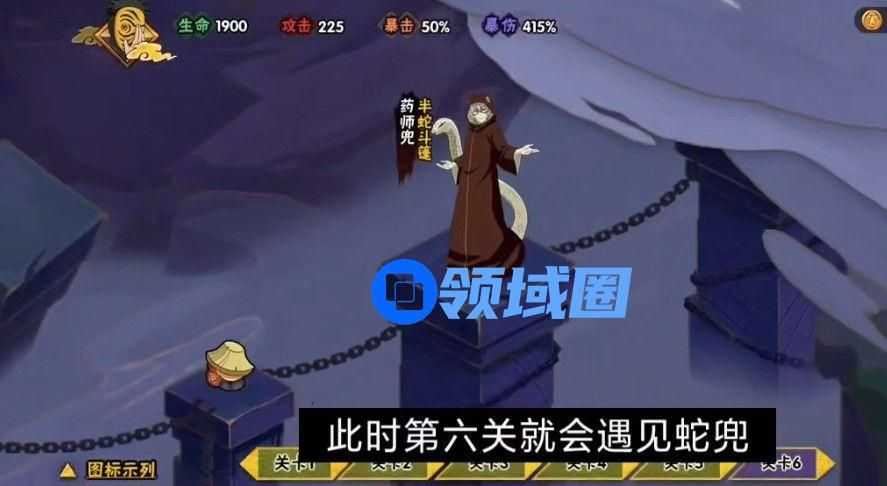 2、第一关出现药师兜的时候,不要打死,打到一定血量会提示药师兜要逃跑,你让他逃跑,之后第六关就是半蛇兜。