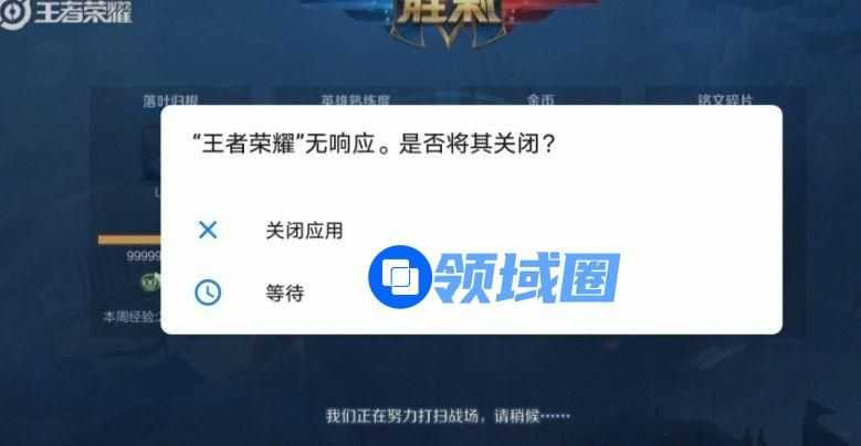 昨天很多玩家都在反应王者荣耀出现无响应的提示,打游戏的时候网络显示是绿的,但是会突然之间就失灵了,角色失控,屏幕无反应。然后过一会儿就会弹出,程序无响应。点击等待可以继续打,但是还是会时不时就出现失控。