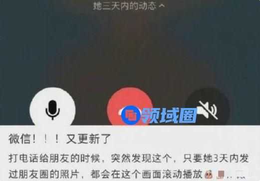 最近升级了最新版微信的用户发现了一个诡异的新功能:拨打好友语音电话时,微信会自动滚动播放对方三天内发的朋友圈动态。