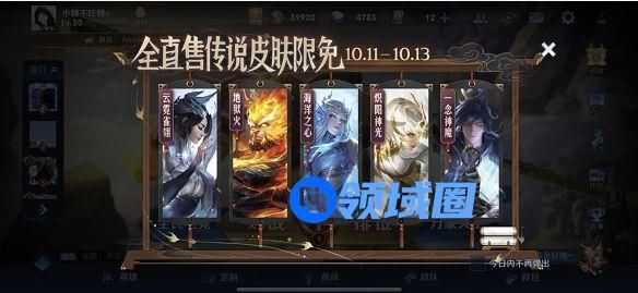 注意:在10月11日-10月13日之间,只要是商城在售的传说皮肤都可以免费使用。