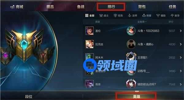 1、大厅点击排行-英雄,这样玩家就可以进入英雄排行榜。