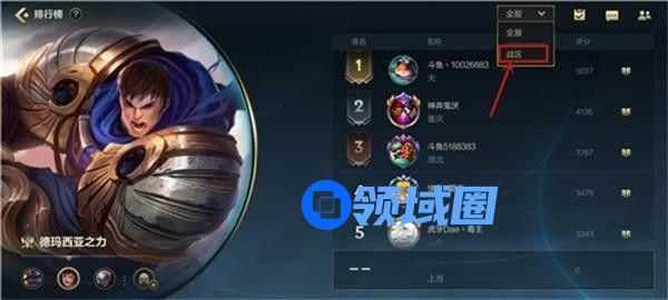 4、战区排行榜会显示你当前所在地区的段位排行,而且你还可以自由切换各个地区来查看,不过默认的是你所在地,因此大家想要查看自己的战区排行榜也就很方便了。