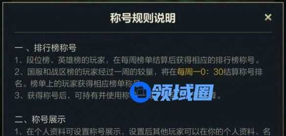 2、国服和战区榜的玩家经过一周的较量,将在每周一0:30结算称号排名,榜单上的玩家获得相应榜单称号;