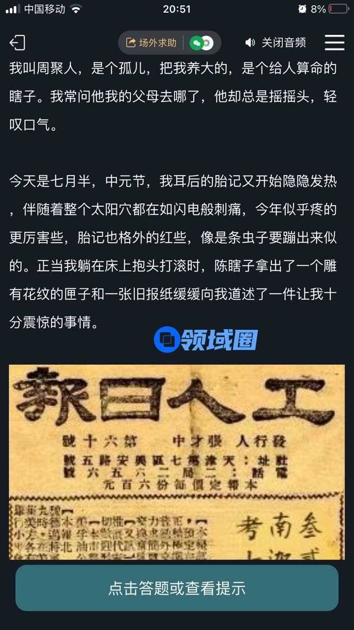 今天是七月半,中元节,我耳后的胎记又开始隐隐发热,伴随着整个太阳穴都在如闪电般刺痛,今年似乎疼的更厉害些,胎记也格外的红些,像是条虫子要蹦出来似的。正当我躺在床上抱头打滚时,陈瞎子拿出了一个雕有花纹的匣子和一张旧报纸缓缓向我道述了一件让我十分震惊的事情。