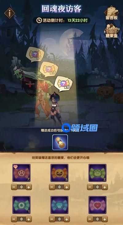 5、玩家可以在日活跃宝箱及回魂夜战斗中获得糖果。回魂夜战斗则会根据玩家上阵的英雄阵营,掉落不同类型的糖果。