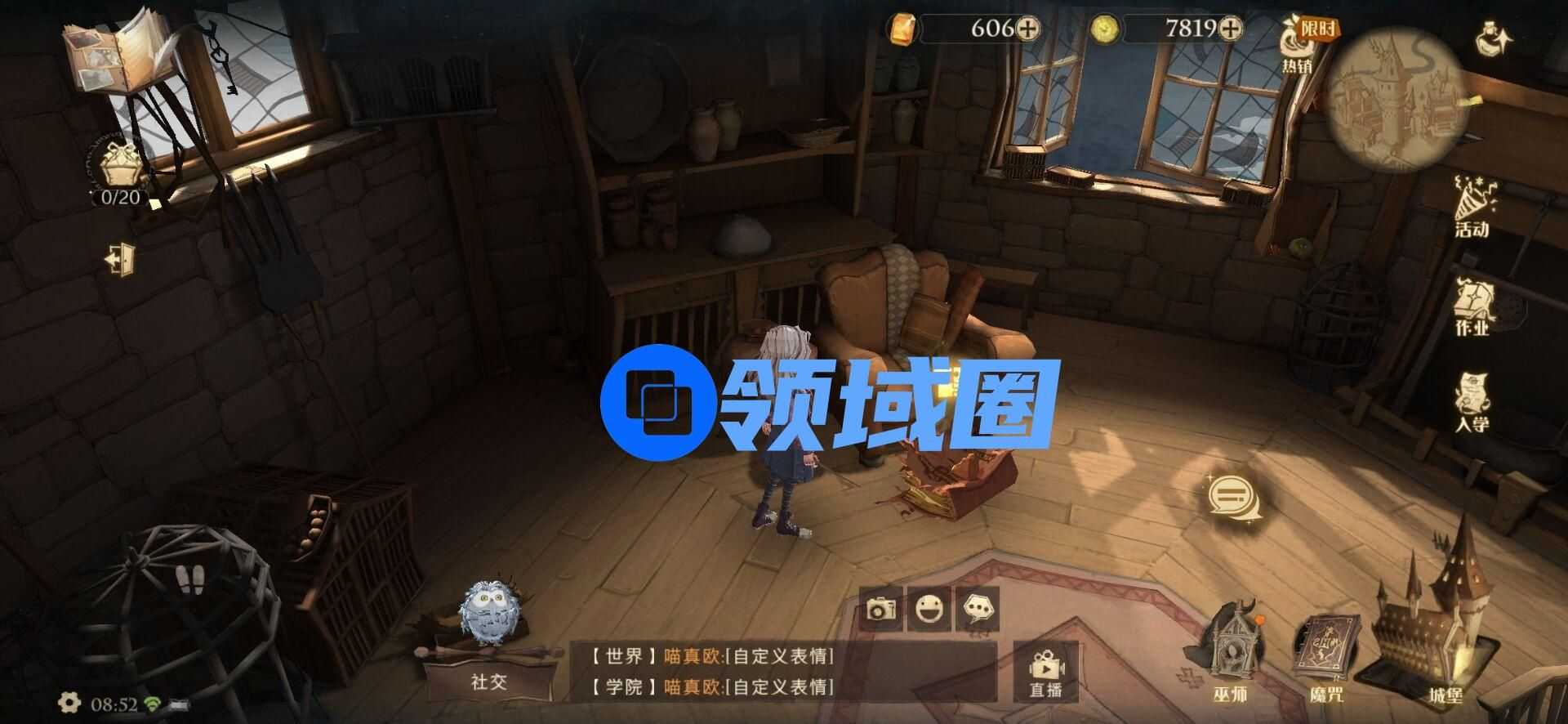 位置:右上角地图【城堡上空】,进入【海格小屋】,在沙发前面