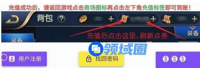 点击用户注册,当然游戏充值这里也是可以的哦。如果你忘记密码,也可以在这里重置密码。
