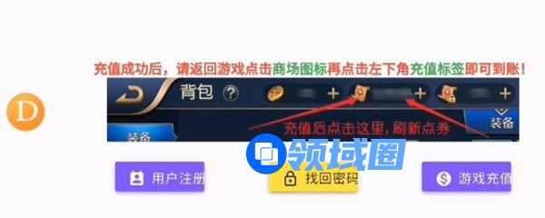 4、充值成功后,再返回到游戏内,找到商场页面中的充值标签,即可到账,刷新账号上的点券数额。