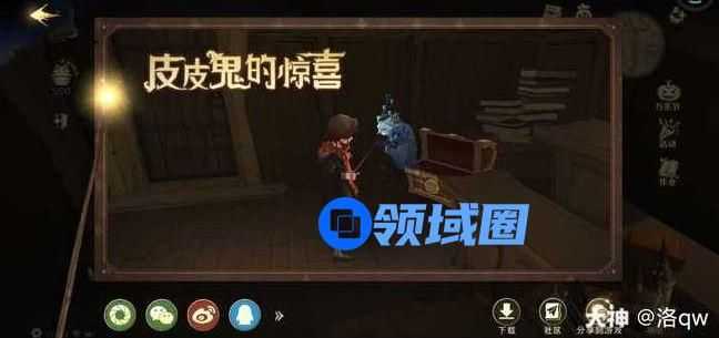 皮皮鬼的惊喜:在城堡主楼魔咒课教室里,门那边的角落里,有一个宝箱,点击宝箱触发惊喜后再分享即可获得400南瓜币