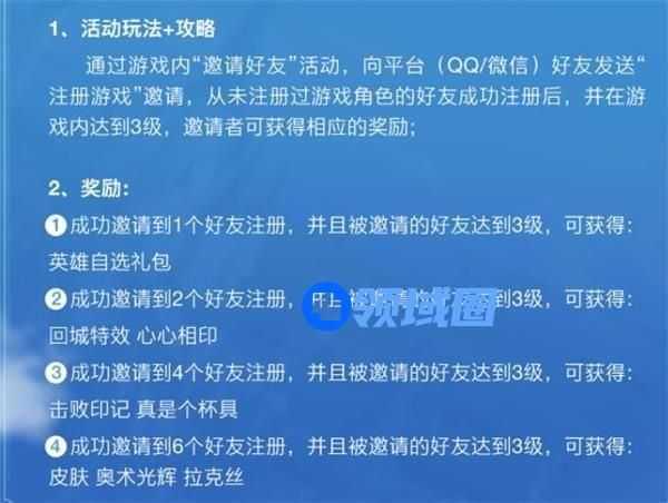 A、成功邀请1个好友注册,并再其等级达到3级时可以获得英雄自选礼包;