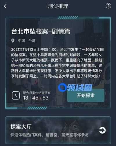 犯罪大师台北市坠楼案剧情篇答案是什么?面对这些剧情,新手玩家很有可能会把一些重要的细节给忽视掉了,这样就导致答案与你越来越远。下面就为大家带来犯罪大师台北市坠楼案剧情篇答案解析。