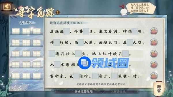 通过调整文字碎片的位置拼接成完整且正确的诗句。