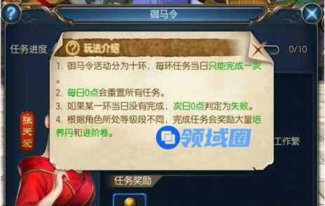 御马令活动分为十环任务,每完成一环任务获得一次奖励。