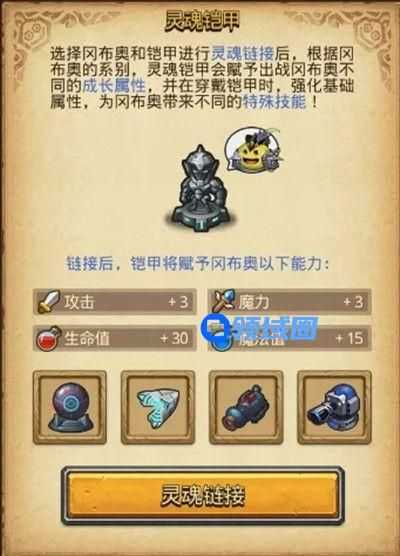 灵魂链接选择不同的系别冈布奥,将获得不同的铠甲属性和技能,战斗系偏向攻击和生命值,魔法系偏向魔力和魔法值,冒险系则均衡成长。