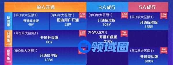 3、三人组团开卡(无附赠等级)价格108元(平均每人36元),三人组团开卡+直升20级价格216元(平均每人72元);五人组团开卡(无附赠等级)价格156元(平均每人31.2元),五人组团开卡+直升50级价格600元(平均每人120元)