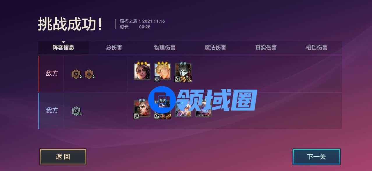 1、这一关很简单,虽然对面有俩个三星英雄,但由于我们这边的羁绊是四保镖,对面根本打不动