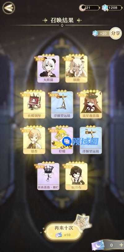 每日抽卡结果分享:每日首次抽完卡不要着急离开~动动手指点一下右上方的分享,只要分享成功就可以获得20个晶石。