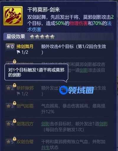 1X:目标被干将和莫邪剑影都攻击过时,额外发出1道剑影攻击该目标