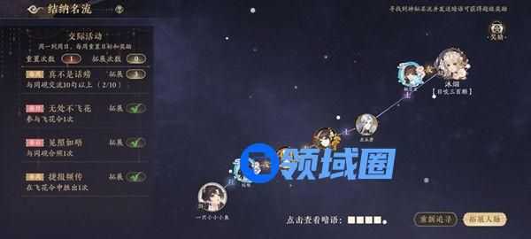 神秘人相关的成就达成入口在雅集中,点右下角的结纳名流,完成任务可以得到相应步数,选择正确的线路可以获得暗语。