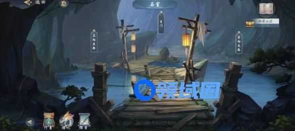 1、玩家要从廊桥湖中心(亭子左边)下潜进入石室;