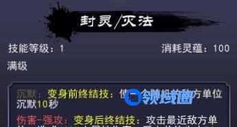 封灵/灭法:攻击最近敌方单位,造成高额土属性伤害,受击单位失去部分灵蕴值