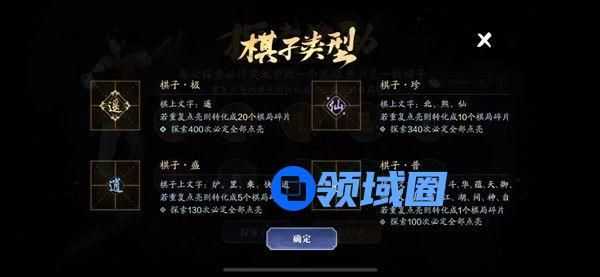 棋局内的棋子共有四种,分别为棋子·普、棋子·盛、棋子·珍、棋子·极。