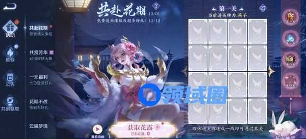 在新出的活动共赴花期中,需要玩家翻牌子来连成一条线从而获取奖励。