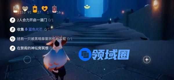 完成方法:进入禁阁地图,一直乘坐电梯或者双人背背来到禁阁顶层;朝着终点神坛左边飞去,可以看到山脚下方有一个冥想点;