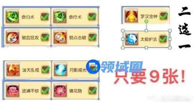 5个特技:输出+回复+减伤(罗汉太极2选1),2个技能:物理面伤,2个保命:波澜+镜花隐