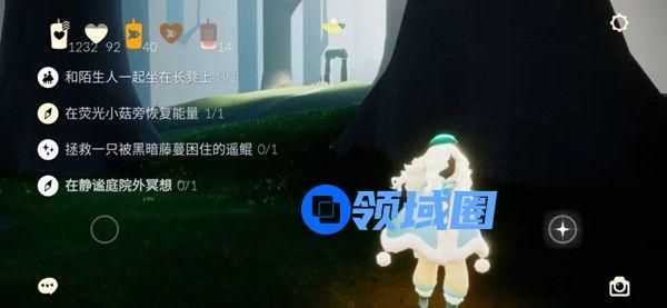 完成方法:在荧光森林里飞行消耗所有能量,再去站在荧光小菇旁边;跳到荧光小菇上面后就会立刻充能