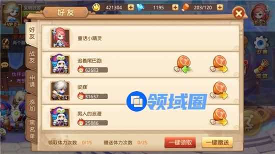 2、添加好友,我们还可以获得一定量的体力,或者赠送一定量的体力给好友