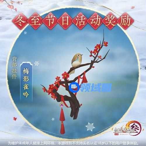 沉浸在温泉山庄的侠士们也请不要错过冬至节日的缤纷奖励——背部挂件【梅影雀吟】与摆件家具【梅枝雪色】哦!背部挂件【梅影雀吟】乃是一只红梅,据传是荀鸢将坊内冬至前夕的女红考核忘得一干二净,只得央求水婳帮忙,双姝连夜抱佛脚,一人制梅枝流苏,一人制长尾山雀,合得此物件。荀鸢欲起名“雀踏枝”,遭拒,复改为【梅影雀吟】。叶芷青观后笑道:“梅影凛冽含暗香,山雀……山雀别有一格……”看在梅影的份儿上,让天不怕地不怕的荀小虎逃过一劫。而摆件家具【梅枝雪色】则颇具冬日气息,为你的家园增添一抹雪白倩影!