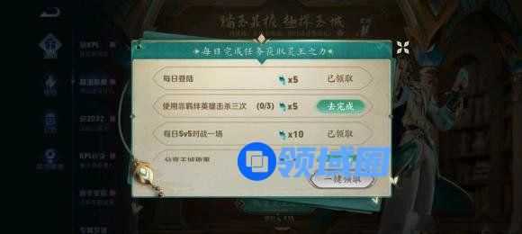 2、每日对战:获得灵玉之力*10,模式包括排位、5v5匹配、娱乐模式、5v5人机